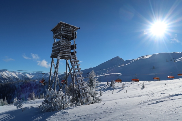 Ebenfalls immer einen Besuch wert: der Berggasthof Sattelbauer. Dort gibt es traditionelle Hüttenkost und einen tollen Ausblick auf Flachau. Zurück ins Tal geht es dann auf der 2,5km langen Rodelbahn. Alle Rodelbahnen in Flachau sind abends übrigens beleuchtet.
